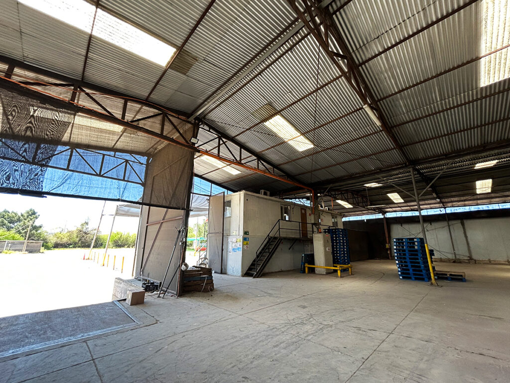 • Gran galpón principal techado, actualmente habilitado para actividades productivas.